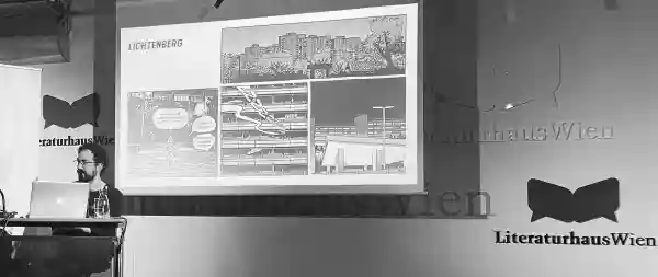 A comic reading is a live format that basically works just like a literary reading. The only difference is that the comic panels are projected using a projector or smartboard to accompany the author's voice. This creates an exciting audiovisual live format that is becoming increasingly popular in Germany.